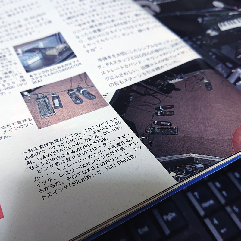 記事後半にはサポートキーボードの佐藤達也氏のセットアップについて特集されている。